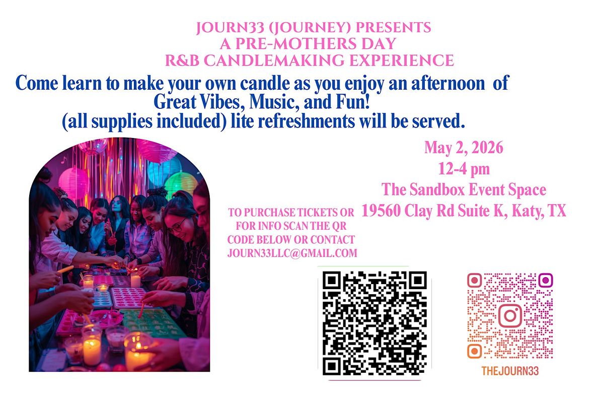 Hosted by Journ33 Candle Co, this is not your basic candle class — it’s a whole vibe. Come make your own custom candle, enjoy the brunch atmosphere, take pics, laugh, and celebrate the moms/mother figures in your life (or treat yourself because you deserve 🫶🏽).