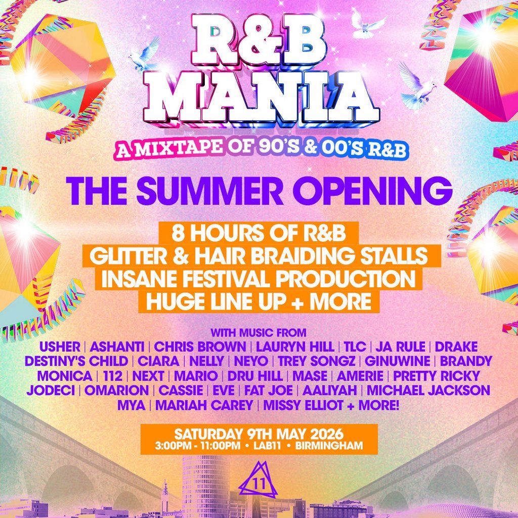 Birmingham, are you ready to bring back the best of 90s and 00s R&B music? R&B MANIA is coming to Lab11 on Saturday 9th May 2026!Music Genres : R&B, Hip Hop, 1990s, 2000s, 2010s