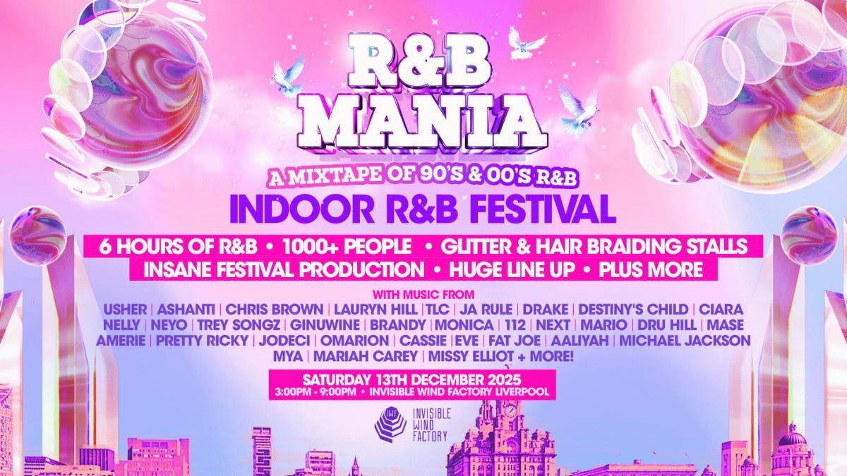 RNB MANIA returns to invisible Wind Factory in Liverpool on Saturday 113th Decemberor an insane 6-hour indoor festival! ๐