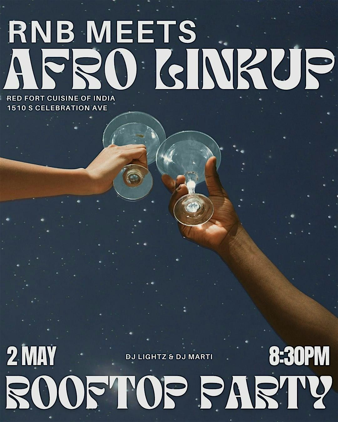 This is how we start welcoming summer . Get ready for an epic night where RNB vibes blend perfectly with Afrobeat rhythms! Join us at 1510 S Celebration Ave on May 2, 2026 at 8:30 PM (Mountain Daylight Time) on the ROOFTOP. It’s the perfect chance to dance, chill, and connect with awesome people in person. Don’t miss out on this unique fusion party – bring your crew and let’s make memories! Guest djs @_djmarti alongside @djlightz