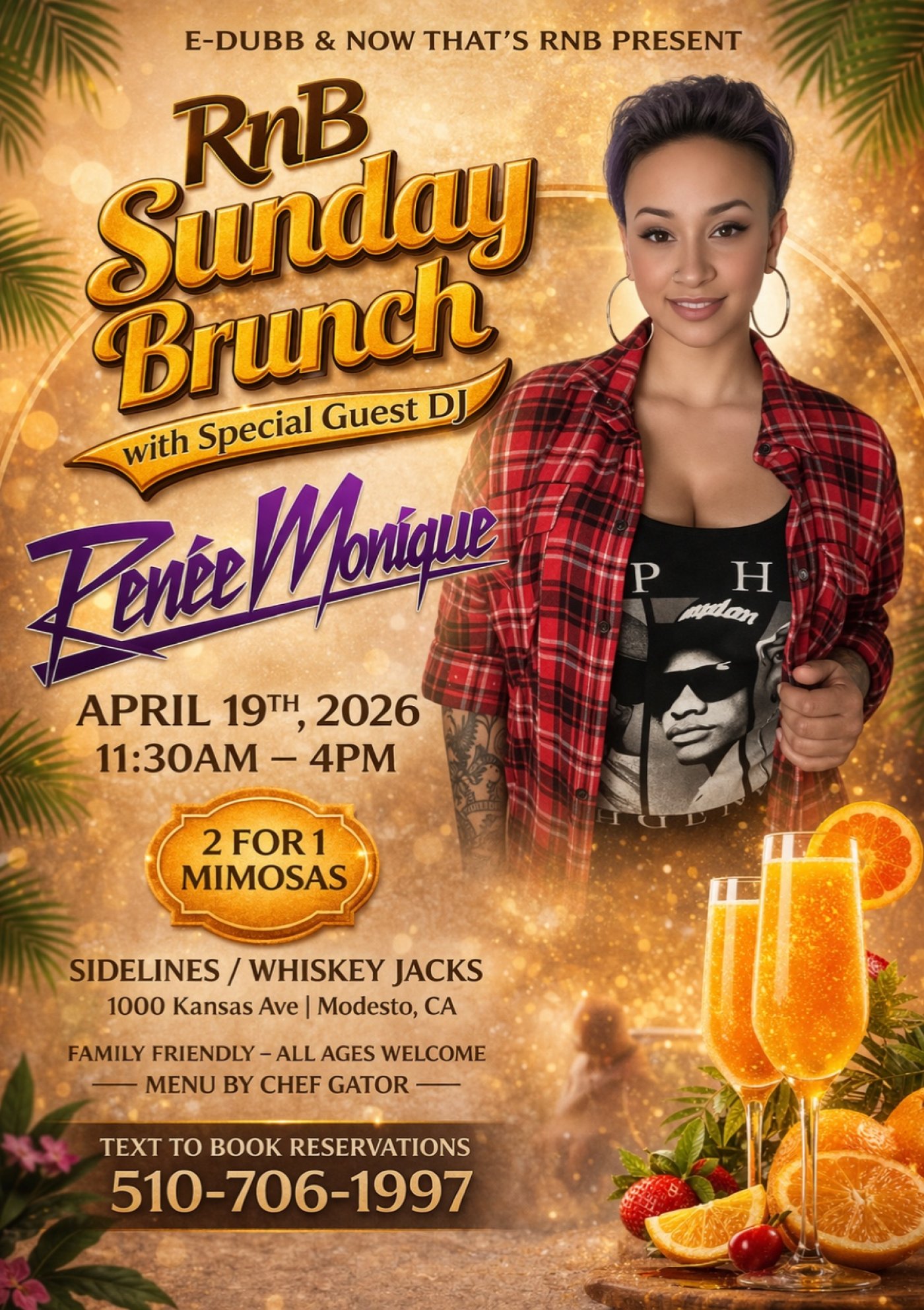 Modesto California are you ready? I say #209 are you ready? Central Valley please welcome celebrity chef, “Chef Gator” and his healthy southern cuisine to Sidelines Whiskey Jacks for an incredible RnB Sunday Brunch Easter addition, this is a family friendly brunch. All ages are welcome doors open at 11:30am & we close at 4pm. No entry fee or reservation fee. Just call or text to book your table reservation now 510 706-1997