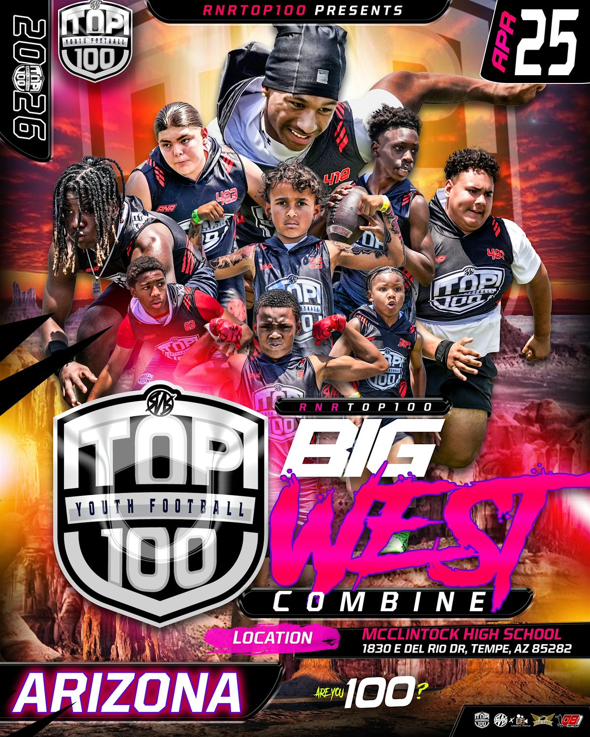 RNRTOP100 Combine Series, the nation’s #1 Youth football Exposure Series. Come compete and get evaluated by RNR Certified Scouts, earn your stars, and earn a Spot to compete this Summer at the 2026 TOPDAWG at Syracuse National Middle School Showcase June 23-24th. Or the 2026 RNR Youngstars Showcase. Will you be crowned a top athlete in your region and get invited to our National Summer Showcases??? Register now for the regional location closest to you! Here’s the links and we can’t wait to see you there.