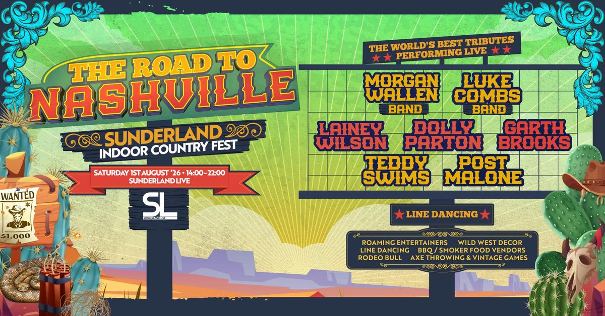 🎸 The Road to Nashville - Sunderland! 🎶Saturday 1st August 2026 | 14:00-22:00 | Sunderland LiveGet ready for a boot-stompin', hat-tippin' celebration of country music as The Road to Nashville rolls into Sunderland! Experience the world's best tribute acts performing live, bringing the heart of country music straight to Sunderland.🤩