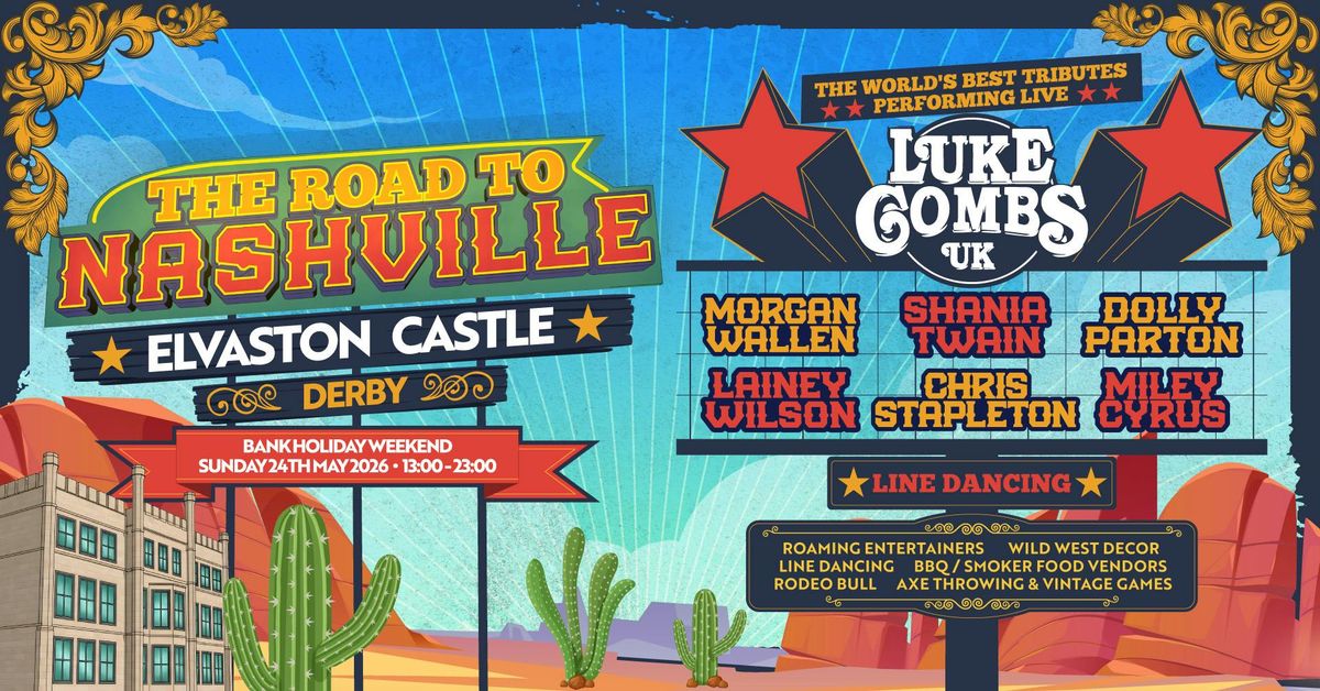 Following a string of epic, sold-out events across the UK, The Road to Nashville is making its way to DERBY for a massive country celebration! 🤠🎵On Sunday 24th May 2026, the stunning grounds of Elvaston Castle will be transformed into an open-air country music extravaganza, showcasing the ultimate tribute acts to Luke Combs (UK), Morgan Wallen, Shania Twain, Dolly Parton, Lainey Wilson, Chris Stapleton, and Miley Cyrus. 🌾