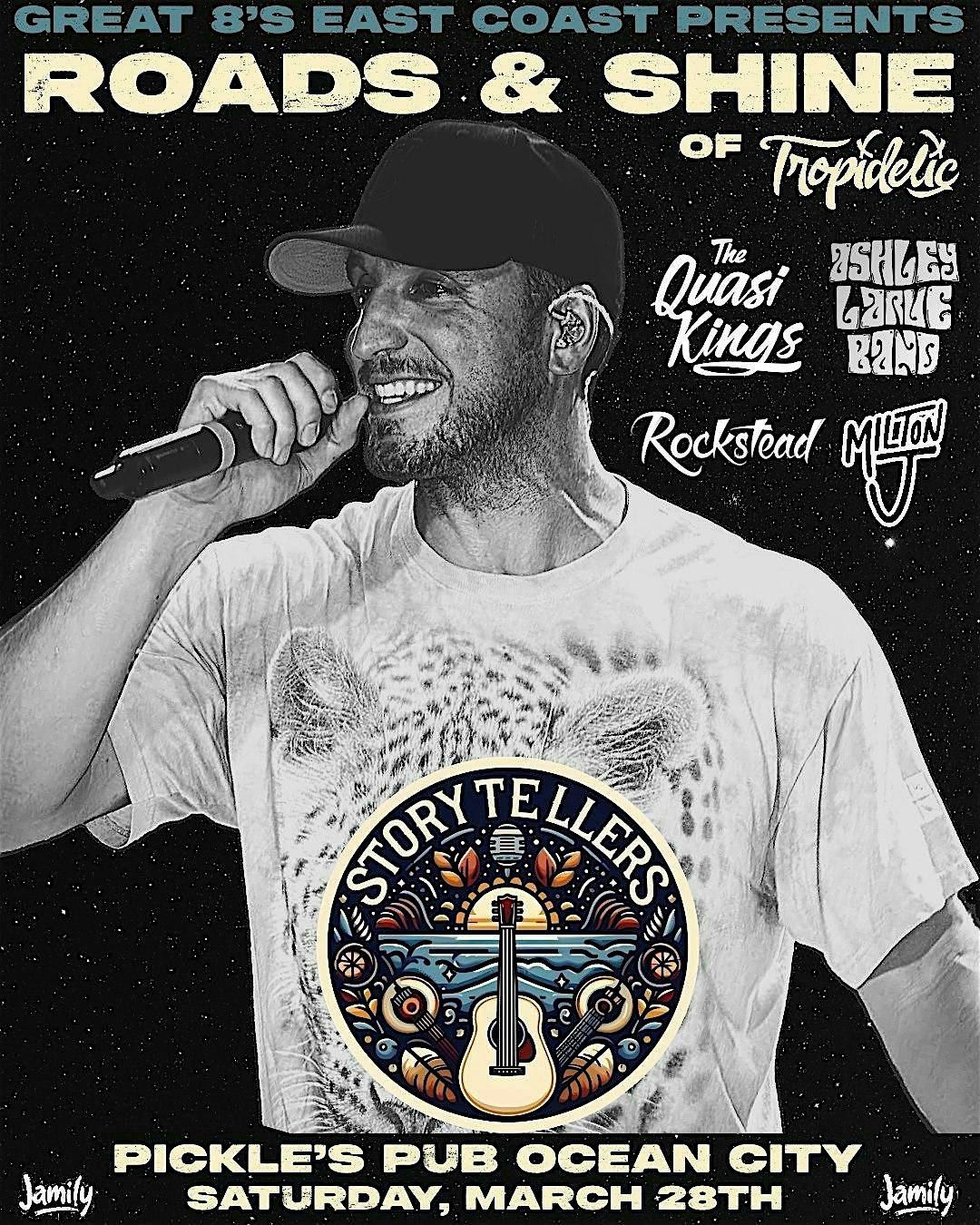 Roads and Shine of Tropidelic hit the Pickles Pub Stage with The Quasi Kings, Ashley LaRue Band, and Milton J. for a nonstop night of reggae-rock, funk, soul, and pure energy. Doors at 6 PM — get there early!