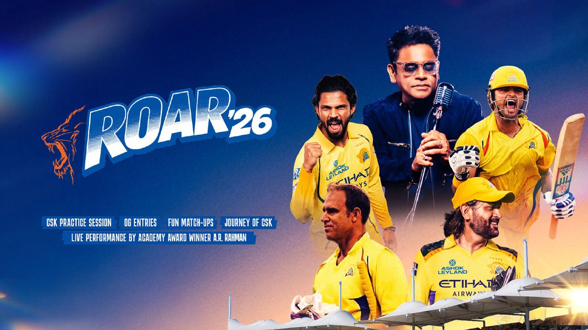 ROAR’26 is a first-of-its-kind mega fan spectacle by the Chennai Super Kings set to take over the iconic M.A. Chidambaram Stadium for an evening celebration of cricket, nostalgia, and entertainment.In a rare coming together of eras, “OG” Super Kings including legends like Suresh Raina, Matthew Hayden, M Vijay and S Badrinath will return to Chepauk and take on the current CSK squad in a series of special, never-seen-before match-ups designed to celebrate the team’s legacy and its loyal fanbase.Adding to the spectacle, Oscar-winning composer A. R. Rahman will deliver a special live performance, transforming Chepauk into a high-energy arena of music, lights, and immersive fan moments.More than just an event, ROAR’26 is a tribute to the journey of CSK, from iconic memories of the past to the promise of the future, bringing fans together for an evening of unforgettable moments, friendly rivalries, and plenty of “Yellove”.