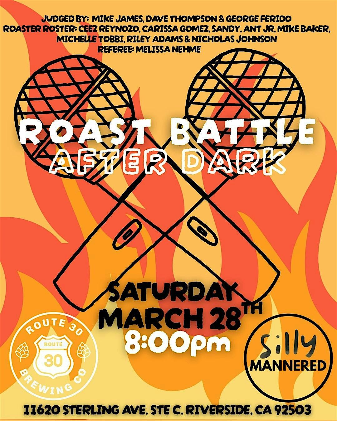 Roast Battle After Dark: Comics go head-to-head in a winner take all tournament at Route 30 Brewing. Saturday, March 28 at 8pm.