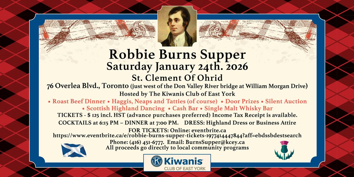 Please join us on Saturday January 24th., 2026 as we celebrate Scotland’s national poet with the Address to a Haggis, the toast to The Immortal Memory and toasts to the Lassies and Laddies. . . with poems and readings and musical accompaniment