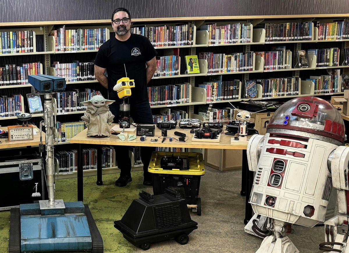 Renowned robot builder Paul Thompson will showcase his entertainment robot creations and other animatronics based on popular film and TV characters. As he demonstrates a variety of robots and animatronics, you'll be able to interact with the robots, ask questions, and learn how they work! Discover how robots are used in the entertainment industry and how they are changing the world.