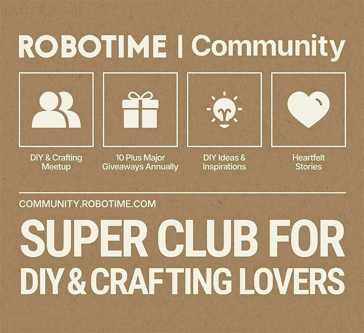 You’re invited to the Robotime Community DIY & Crafting Club Meetup, a free community gathering celebrating Robotime/Rolife — a global brand known for beautifully detailed wooden miniature house kits, music boxes, and decorative pieces that you build yourself. Registration is required to help us plan.