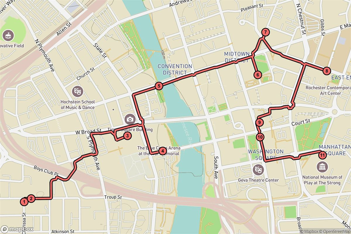 - Stops: 11 captivating landmarks including National Toy Hall of Fame, Blue Cross Arena, Midtown Plaza (Rochester, New York)