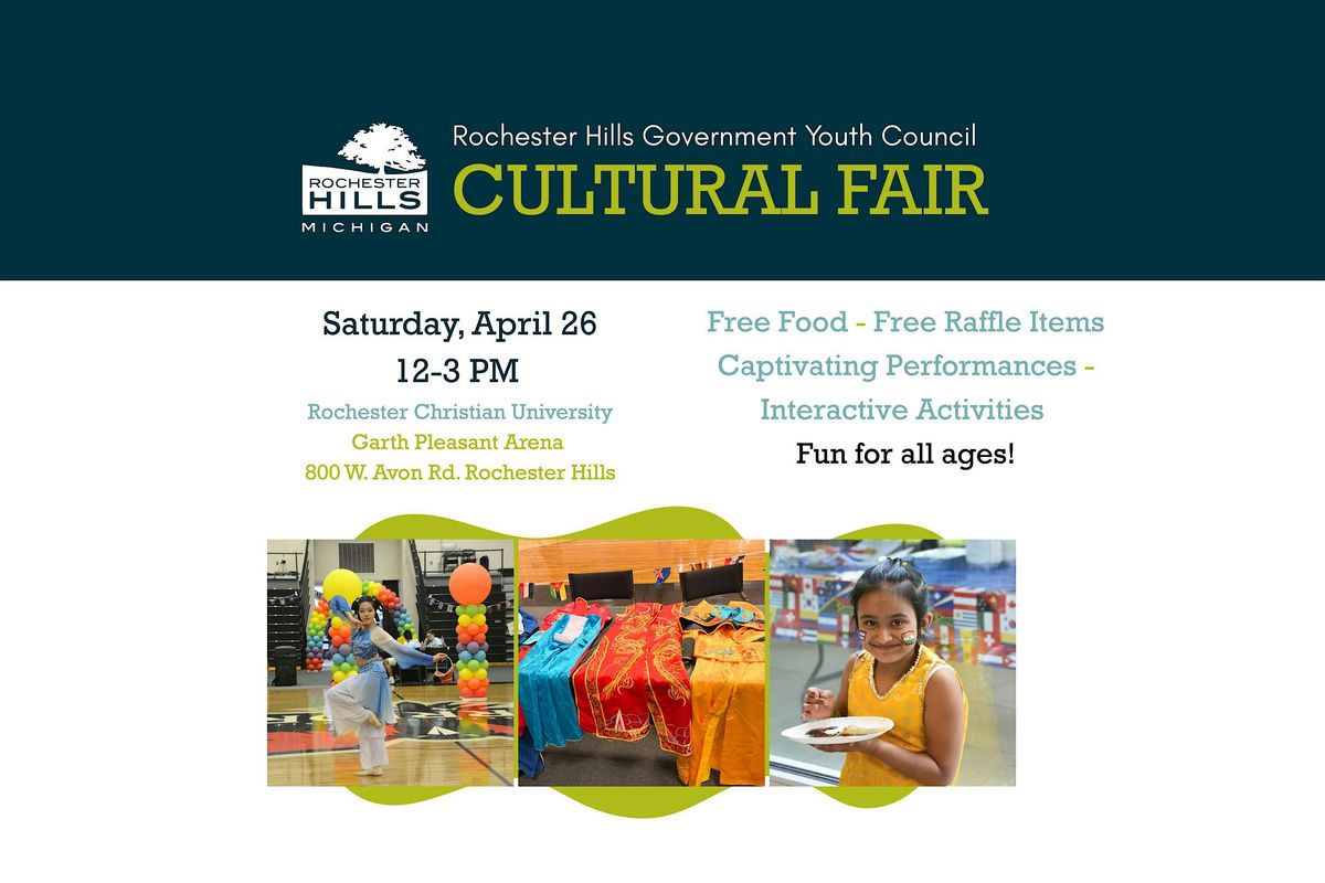 Looking for a unique and engaging family outing? The Rochester Hills Government Youth Council's 6th Annual Cultural Fair is the perfect destination! Join us for a FREE afternoon of cultural exploration. Enjoy lively performances, savor delicious food from around the globe, and discover fascinating traditions through interactive vendor booths and raffle prizes. It's a fantastic way to learn, connect, and celebrate diversity with your community. Register for the 2026 Cultural fair today! Visit https://www.rochesterhills.org/government/city_council/rhyouthcouncil.php