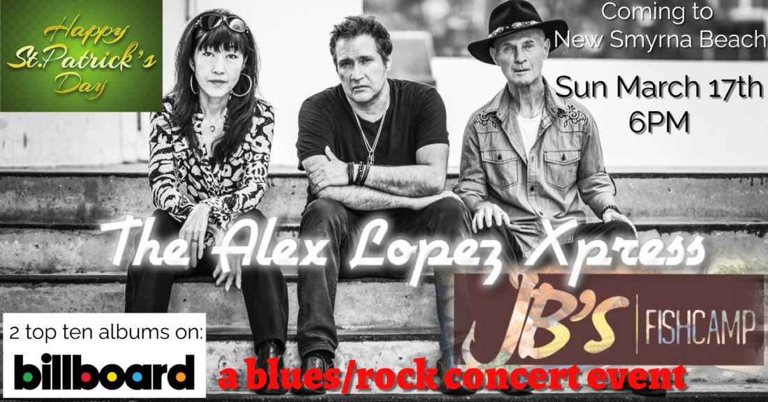 Returning to JBs Fish Camp in New Smyrna Beach on St Paddy's Day Alex Lopez and his band The Xpress live in concert performing songs from their NEW top ten Billboard charting album "Looking for a change" Sunday March 17th starting at 6:00PM.