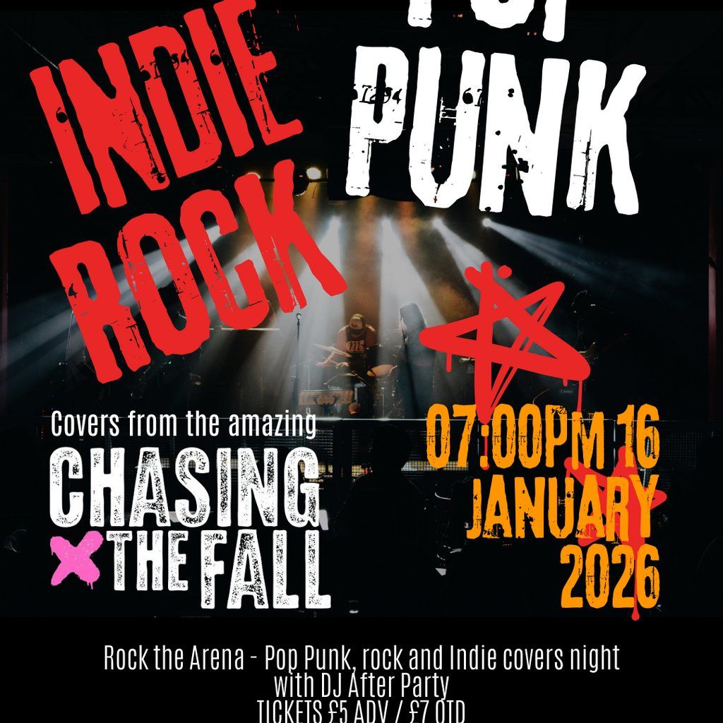 Get ready to Rock The Arena as Chasing The Fall take over for a full-throttle night of pop punk, indie and rock covers.Music Genres : Rock, Punk, Pop Rock, Hard Rock