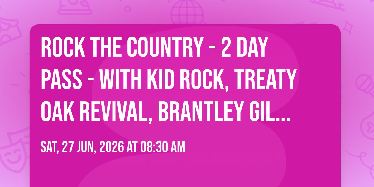 📍 Location: 43.5534, -96.7727🌟 Journey into wonder at Rock The Country - 2 Day Pass - with Kid Rock, Treaty Oak Revival, Brantley Gilbert and more, where extraordinary experiences await around every corner! 🏛️ Set against the backdrop of W.H. Lyon Fairgrounds in dynamic Sioux Falls, SD, this event promises to exceed all expectations. 📅 Join us on June 27th, 2026 at 08:30 AM for a celebration that combines innovation, entertainment, and community spirit in perfect harmony. ✨ There will be an atmosphere where memories are made and stories come alive, ensuring every guest experiences something truly remarkable. 🎊 This is more than just an event; it's a journey into the extraordinary!