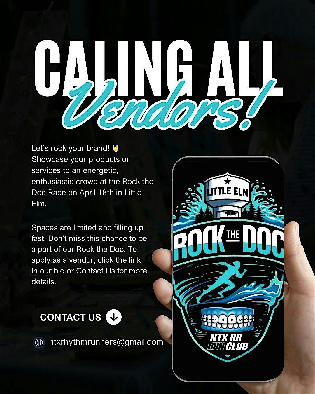 By registering, vendors agree that NTX Rhythm Runner and event organizers are not responsible for loss, damage, theft, injury, or accidents related to participation.