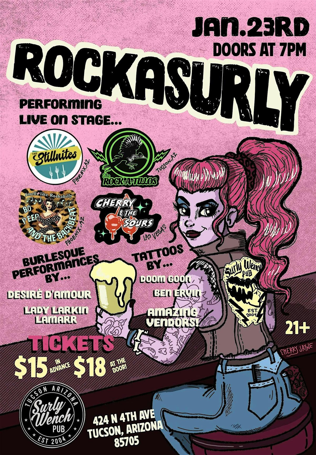 Live performances by Cherry & The Sours (Las Vegas), Bo Peep And The Backbeat (Phoenix), Thee Stillnites (Phoenix), The Rock-A-Tillos (Tucson), bulesque performances by Desiré dA'mour and Lady Larkin Lamarr, tattoos by Doom Goon Ben Ervin and amazing vendors!