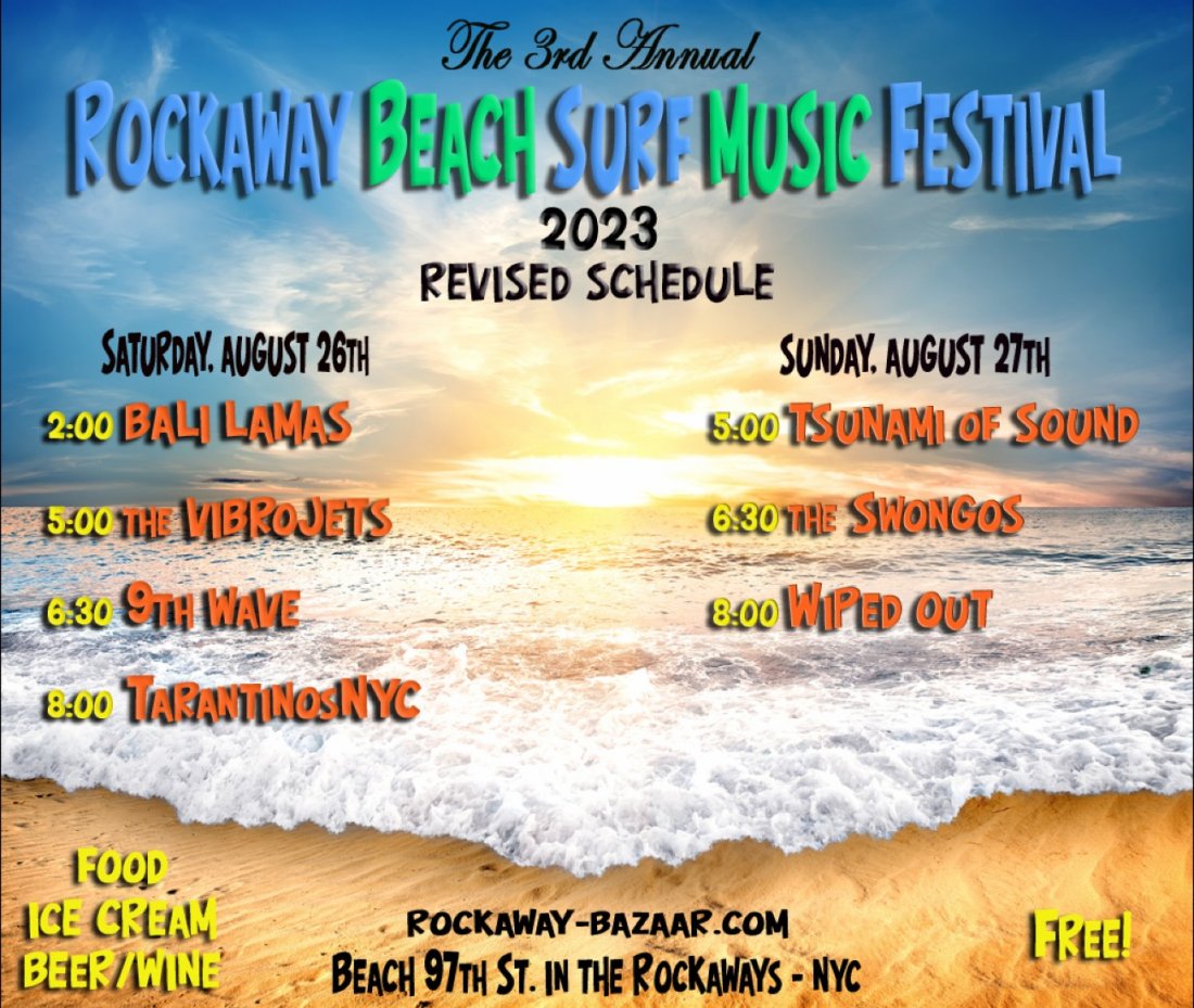 Here is the revised Saturday schedule for the Rockaway Beach Surf Music Festival.