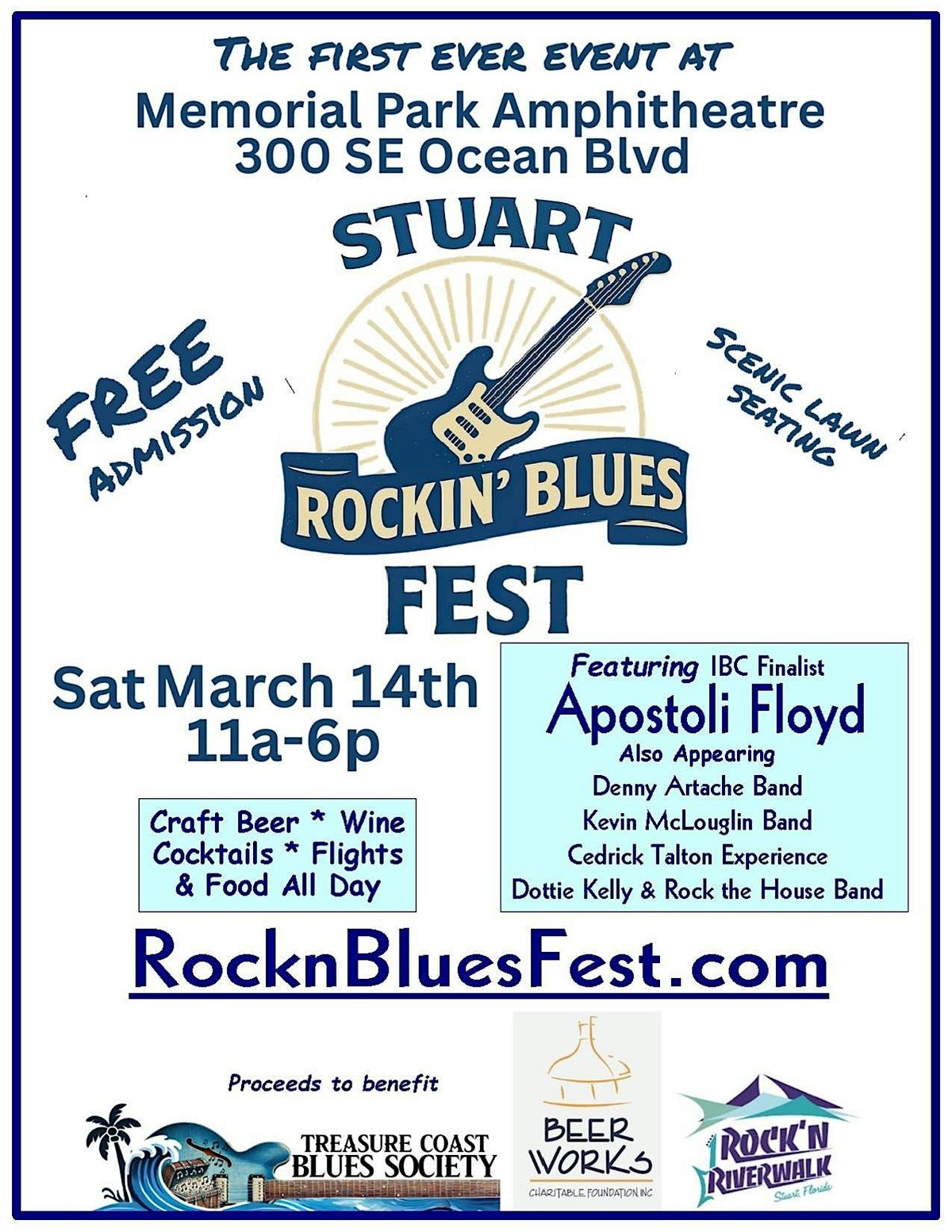 Stuart’s first Rockin’ Blues Fest! A full day of live blues, craft beer, wine, cocktails, and food — featuring International Blues Challenge Finalist Apostoli Floyd.