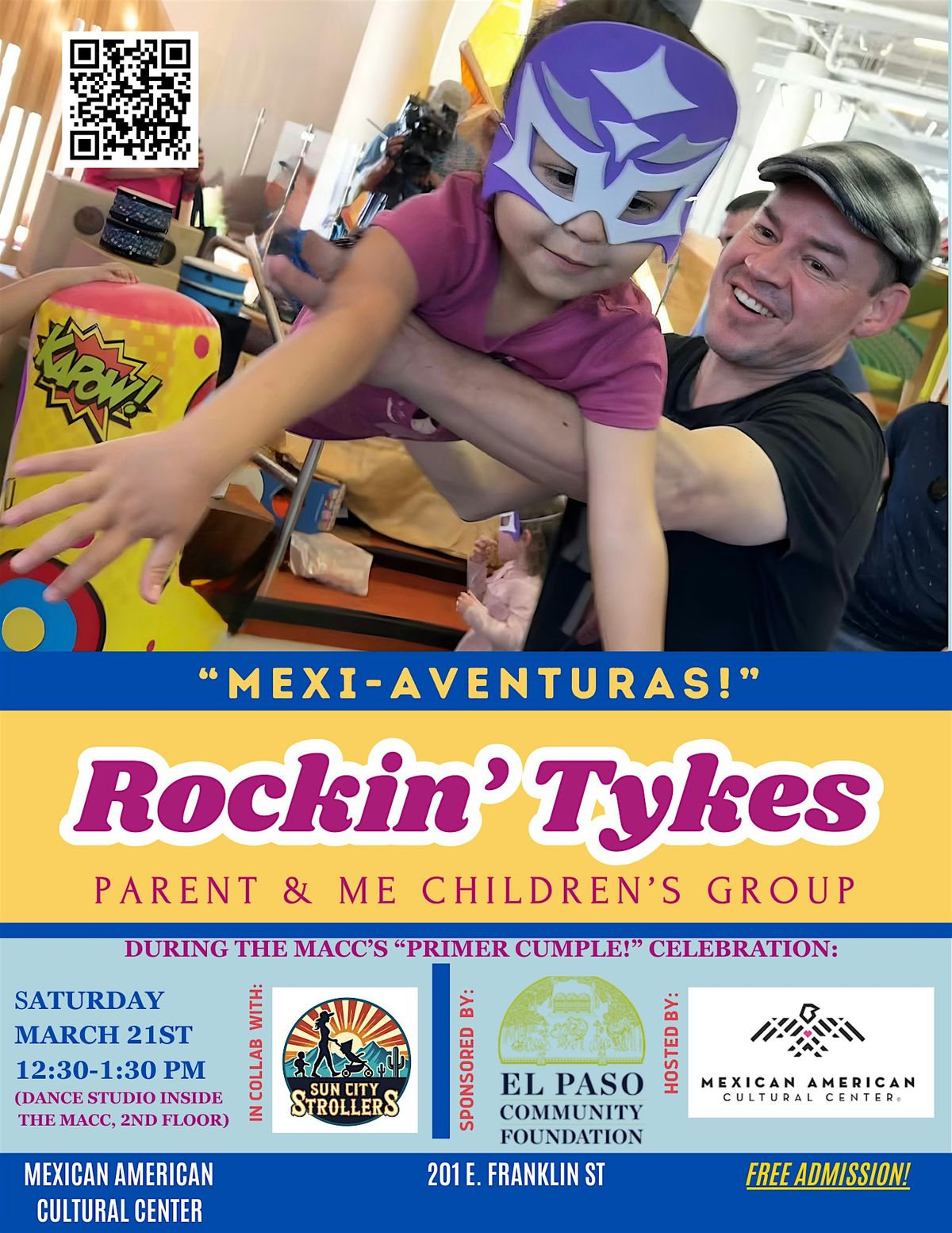 Hi friends! Come hang out with us at El Paso Mexican American Cultural Center for some "Mexi-Aventuras!" as we help our friends at the El Paso MACC celebrate their ONE YEAR ANNIVERSARY on Saturday, March 21st, from 12:30pm - 1:30 pm :) We will be exploring Mexican-American traditions and fun with games, music, sensory activities, and more!