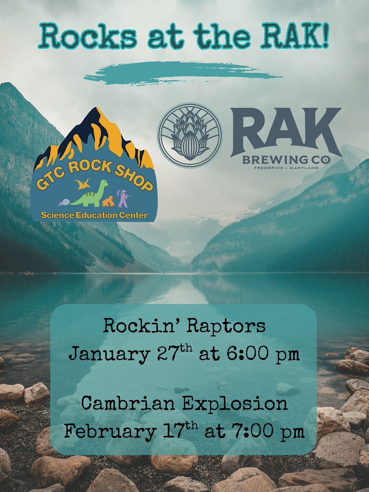 Join GTC Rock Shop staff for one of our engaging and educational Science Sessions. Get ready to rock with some of the most awesome dinosaurs: raptors! Learn some background info about dinos, and jump right into raptors, including species, misconceptions, and even take a look at some models, replicas, and real fossils. All this while enjoying the drinks RAK Brewing Company has to offer. We can't wait to see you there!