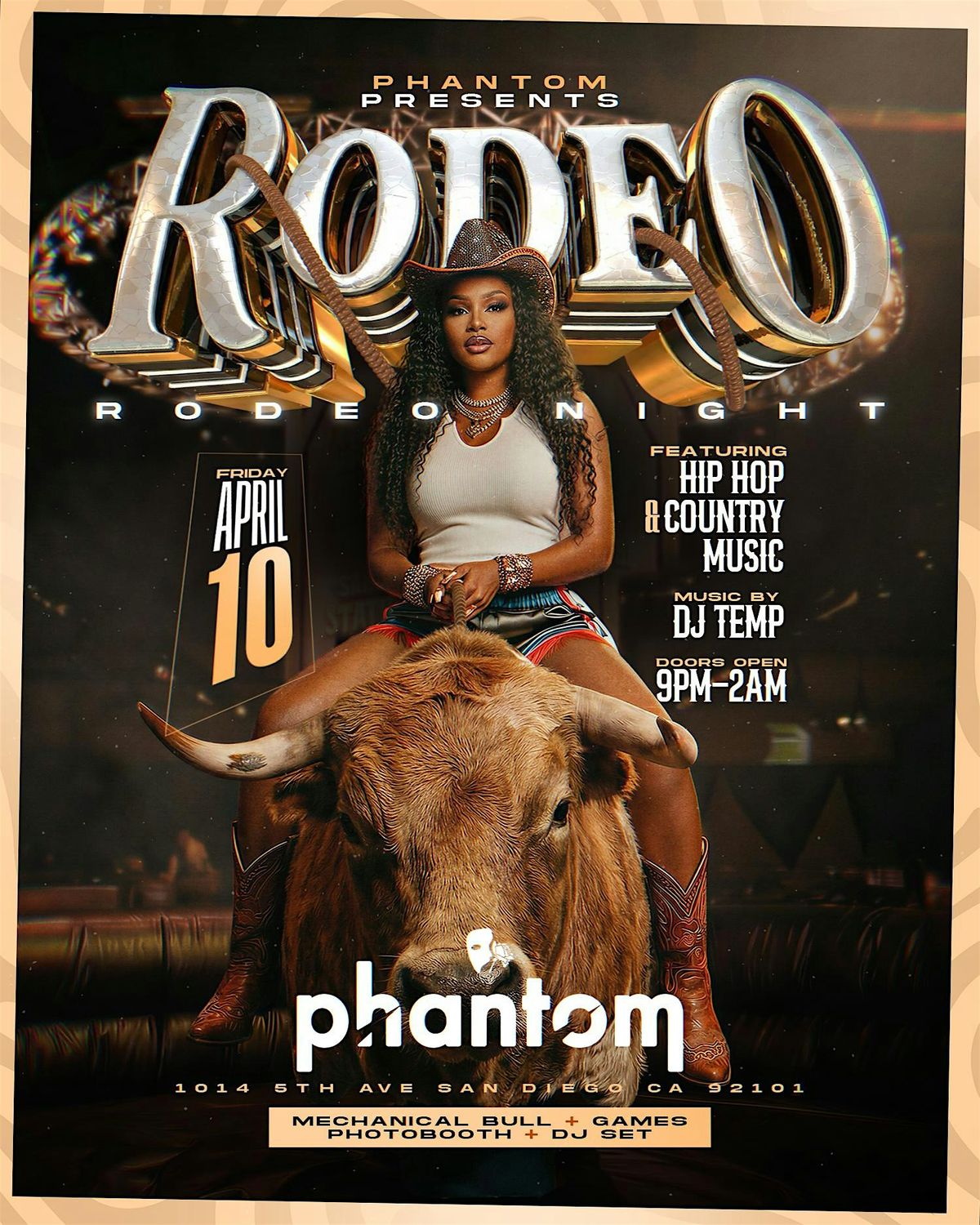 Friday April 10th; Join us as we introduce Rodeo Nights! Mechanical Bull Activated! DM @phantomsd on IG for VIP reservations!About this Event