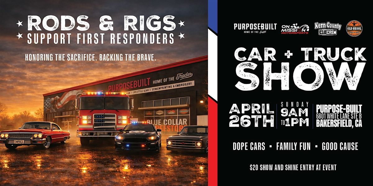 Be at Purpose-Built Oakley on April 26th for a Car & Truck Show Supporting Local First Responders.