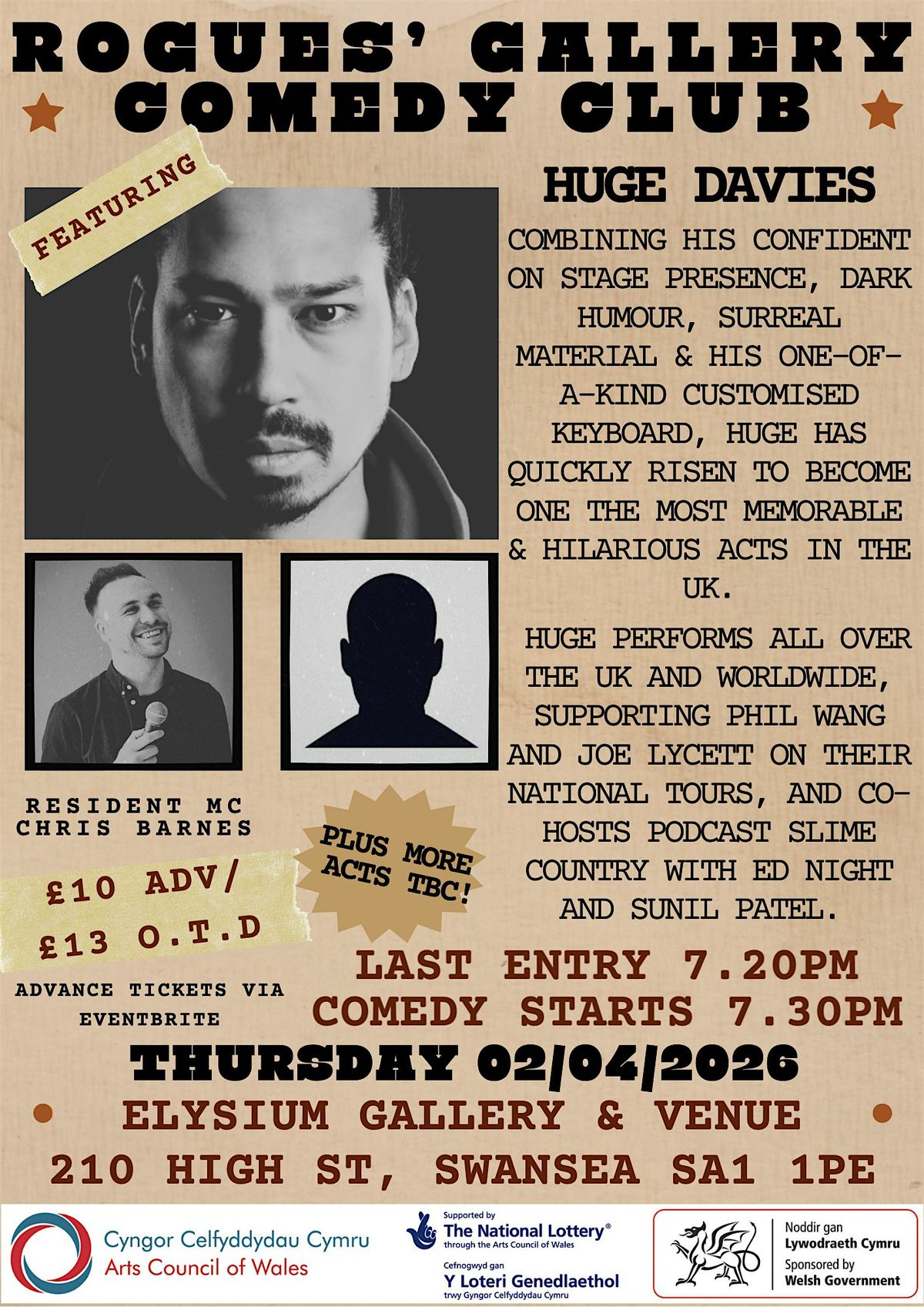 Combining his confident on stage presence, dark humour, surreal material and his one-of-kind customised keyboard, Huge has quickly risen to become one the most memorable and hilarious acts in the UK.