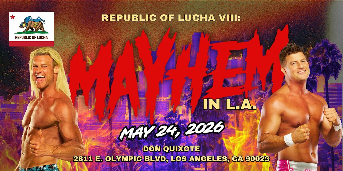 We're back after a 2 year hiatus, join us for an incredible night of Lucha Libre action! Whether you’ve been with us from the start or you're joining us for the first time, we promise you'll have an unforgettable time. Don’t miss out on the madness — gather your crew and dive into the action at ROL 8: MAYHEM IN L.A.!