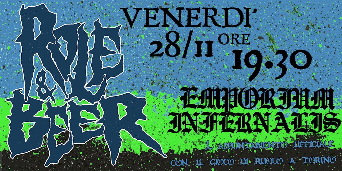 Venerdì 28/11, ore 19.30 vi aspettiamo al Role & Beer, l'appuntamento mensile con il gioco di ruolo all'Emporium Infernalis di Via Calvo 3 a Torino.