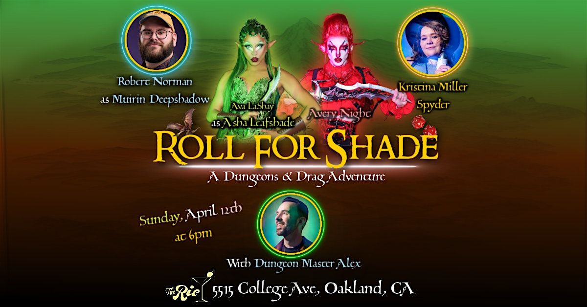 On Sunday, April 12th at 6pm, your favorite East Bay queens return to The Rockridge Improvement Club for a thrilling new episode of Roll for Shade!