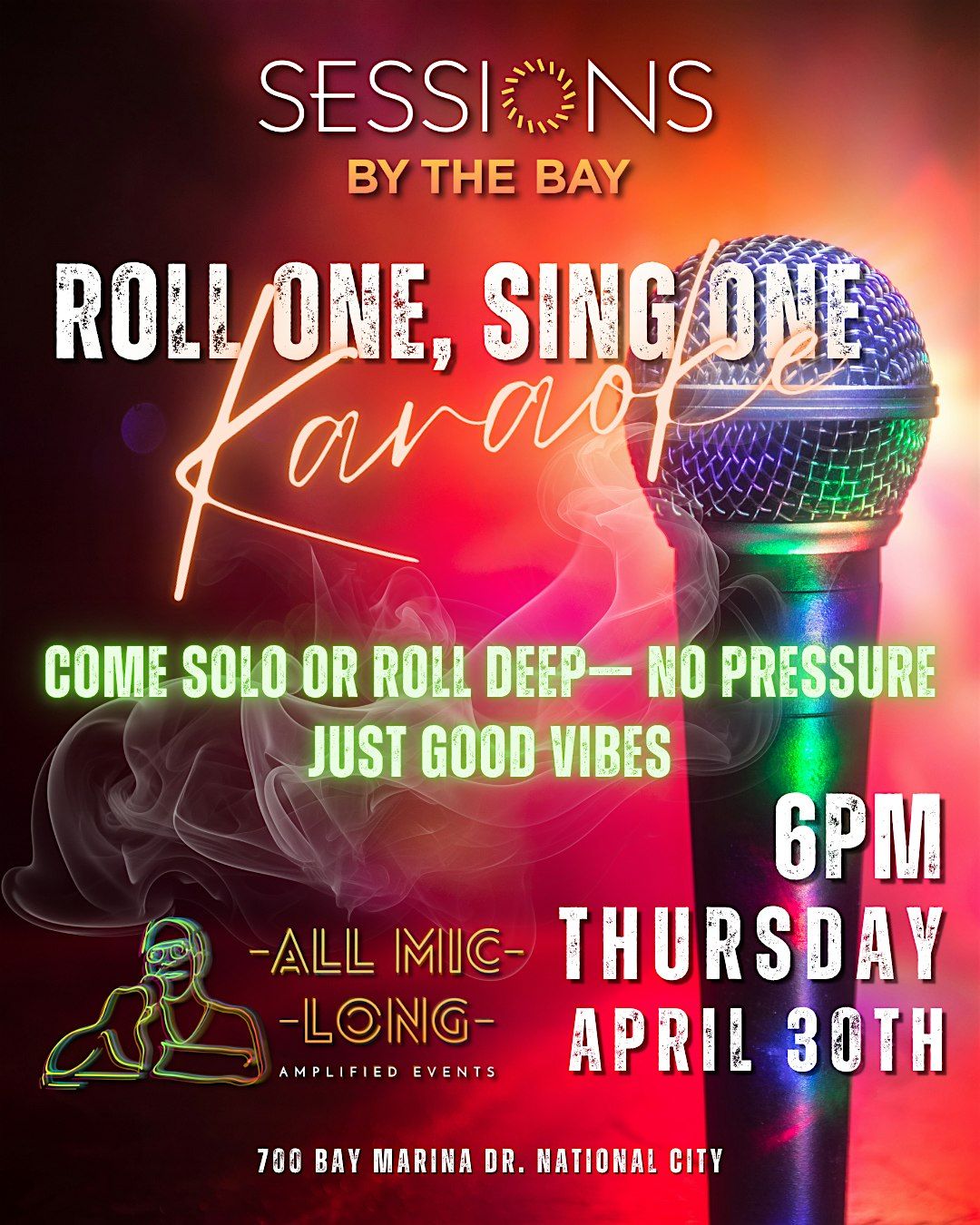 Join us at Sessions by the Bay in National City for Roll One, Sing One Karaoke Night, hosted by All-Mic-Long (Amplified Events). This is the ultimate Thursday night experience where good music, great vibes, and unforgettable performances come together in an elevated lounge atmosphere.