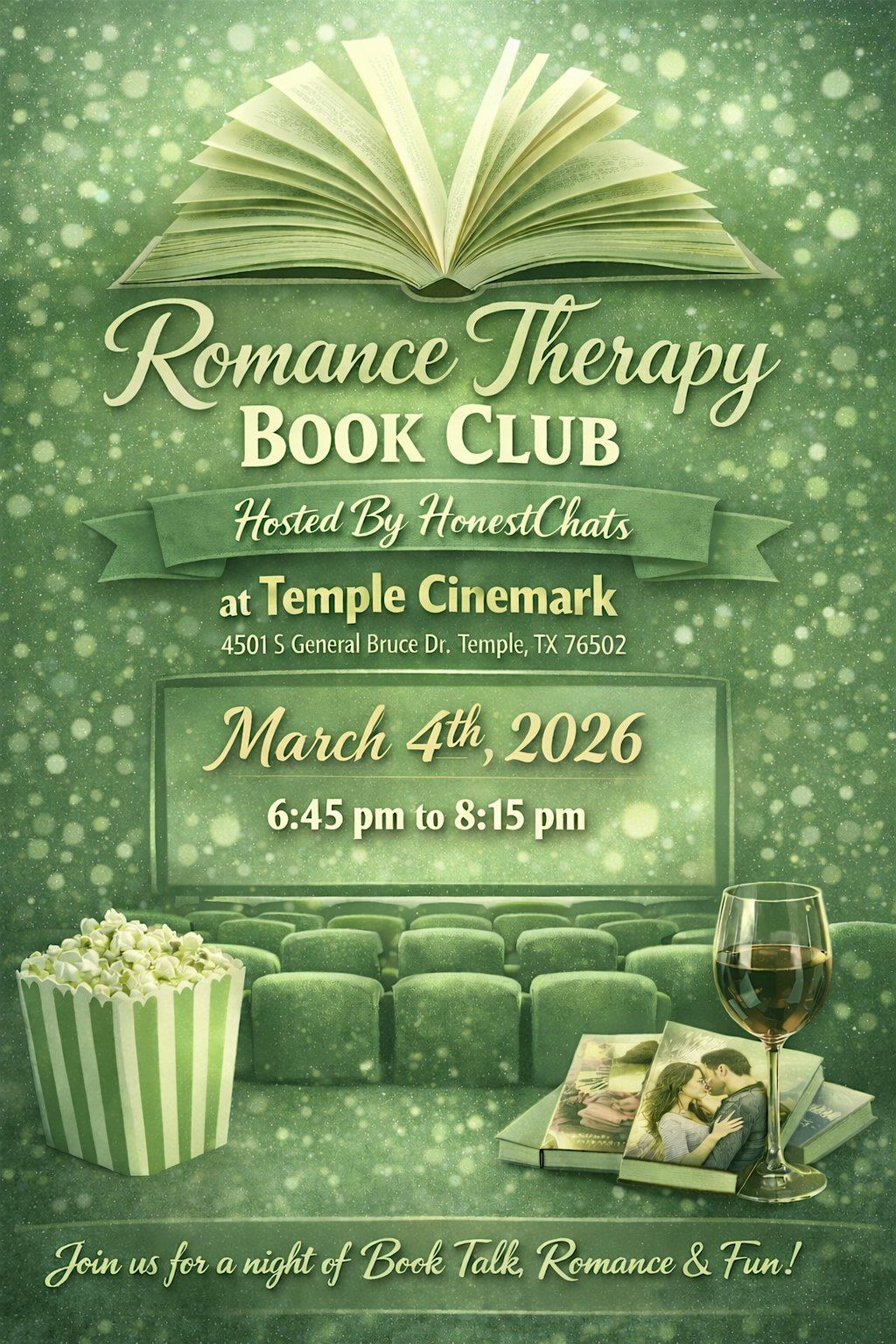 The Romance Therapy Book Club is a therapeutic space where we explore relationships through the stories we read and the ones we’re creating in real life. Short romance stories are provided, and each reading is followed by guided reflection questions designed to spark meaningful conversation, insight, and connection within the group.