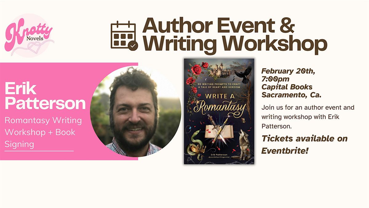 Are you ready to write the next big romantasy? This interactive writing workshop with Write a Romantasy author Erik Patterson will include several writing exercises, a Q&A, and a book signing! So come prepared to write.