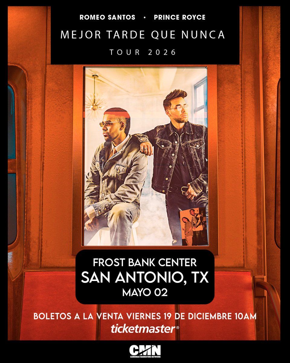 Romeo Santos at Frost Bank Centerπ Step into a world of wonder at Romeo Santos & Prince Royce San Antonio Tickets, where extraordinary moments await! ποΈ Located at Frost Bank Center in dynamic San Antonio, TX, this event will become the talk of the town. π