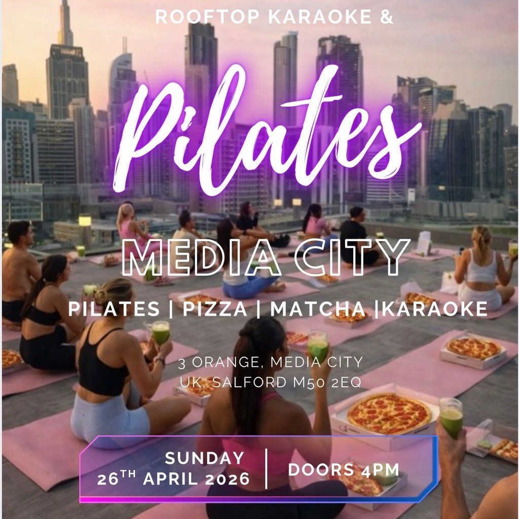 Sun, skyline & slices! Rooftop Pilates at MediaCity with Nell's Pizza, karaoke, giveaways & good vibes. Move, eat, sing & soak it all in!