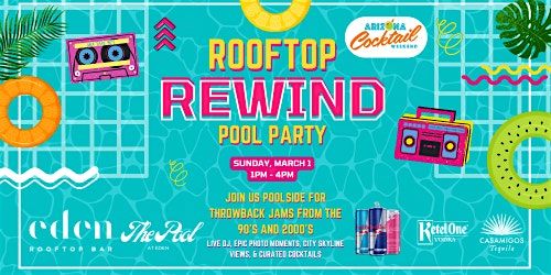 Join us poolside at Eden as we close out AZ Cocktail Weekend with our Throwback 90/2000โs Industry Pool Party, featuring Ketel One, Casamigos, and Red Bull. Kick things off before Top Bars with DJ-driven 90/00's throwbacks, and drink specials all afternoon. Expect high-energy rooftop vibes, industry-forward fun, and cocktails designed to keep the party going.Featuring: