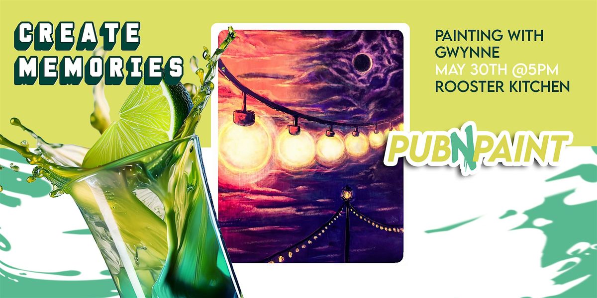 Welcome to Pub N Paint, at Rooster Kitchen and Bar! Come follow along with our artist’s step-by-step instructions to paint your own masterpiece while sipping and munching away to your hearts content! This event is an inclusive, fun, lighthearted atmosphere to create art in good company. All supplies are included, just bring yourself and be ready to have a good time!