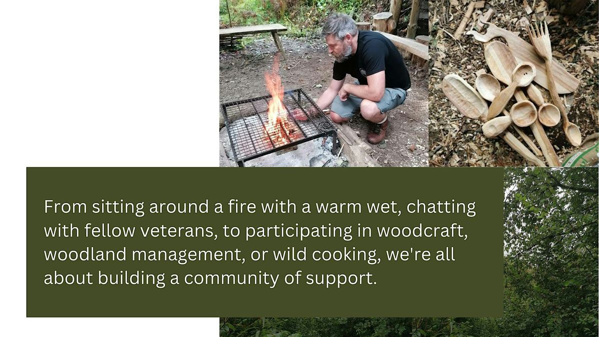From sitting around a fire with a warm wet, chatting with fellow veterans, to participating in woodcraft, woodland management, or wild cooking, we're all about building a community of support.