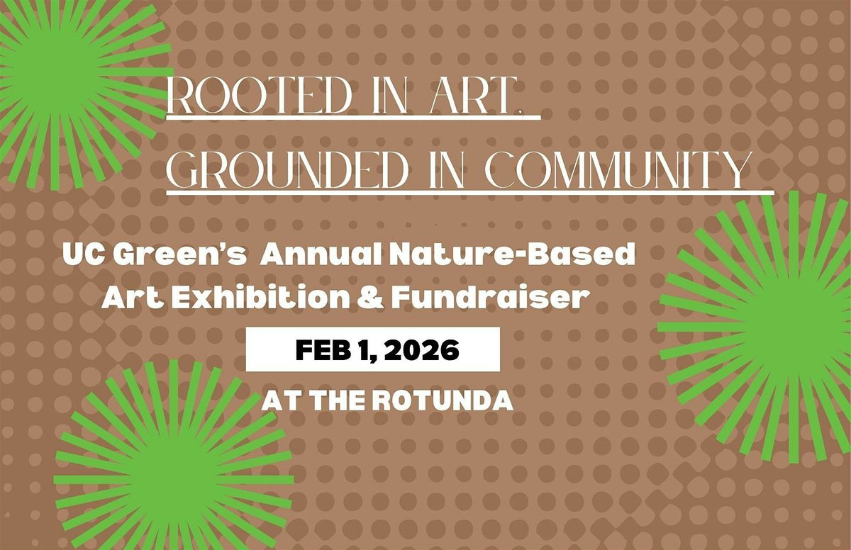 Join UC Green for Rooted in Art, Grounded in Community, our annual nature-based art exhibition and fundraiser celebrating the deep connections between art, trees, and community care.