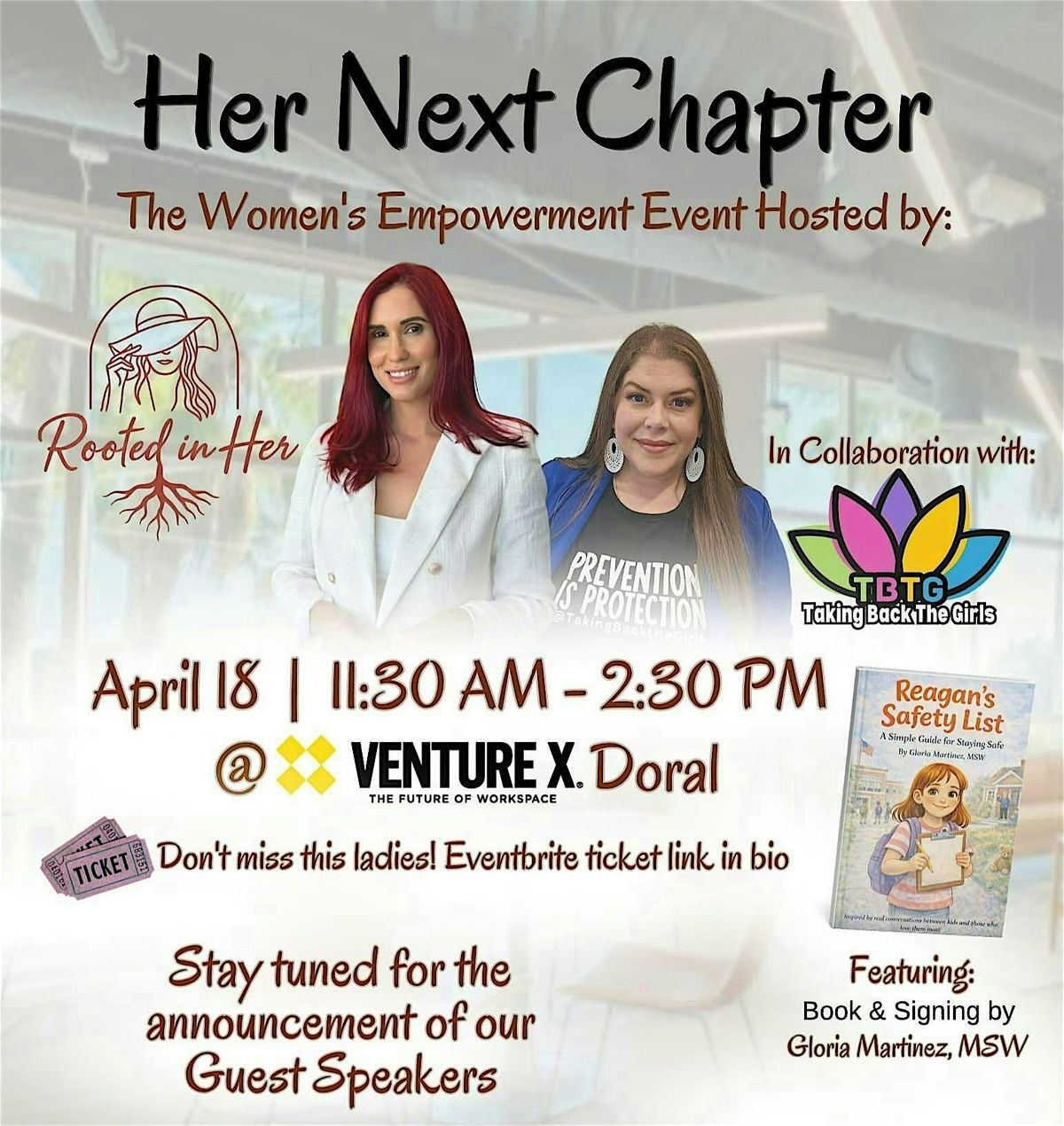This special gathering also features a book launch collaboration with Gloria C. Martinez, MSW, founder of Taking Back the Girls, as she introduces Reagan’s Safety List — a powerful children’s book centered on safety, awareness, and empowerment within the home and community.