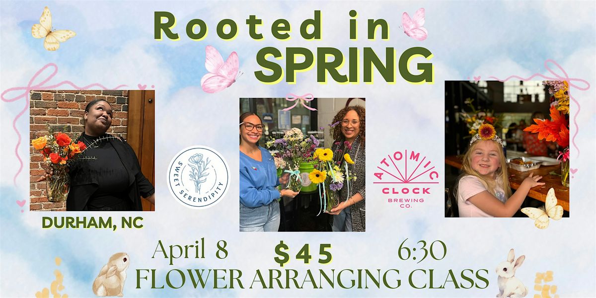 Try something new this Valentines day! Learn the basics of floral design with local NC blooms atAtomic Clock Brewing Con in Durham, NC! This class will feature fun spring colors, local wildflowers, unique greenery, and fun add ons. Guided instruction will teach you all the tips and tricks you need to make a beautiful arrangement to bring home with you.