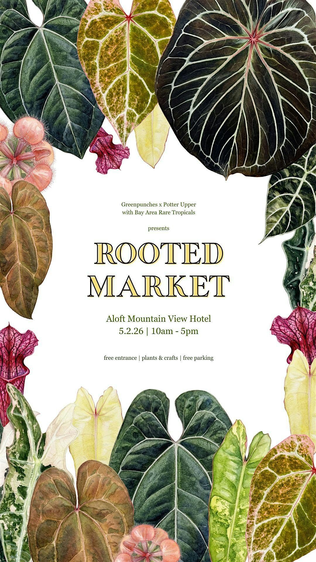 Presented by Greenpunches and Potter Upper in partnership with the Bay Area Rare Tropicals (BARTS) community, we are bringing together premier vendors for a one-of-a-kind boutique shopping experience.