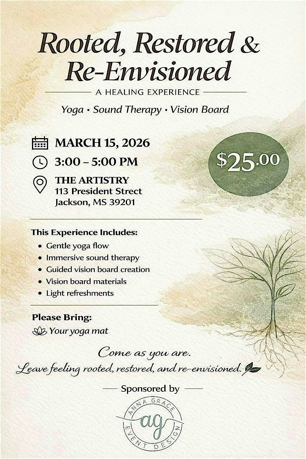 Get ready to dive into an amazing in-person experience where you'll reconnect, recharge, and reimagine your journey. It's all about feeling rooted, embracing restoration, and seeing new possibilities. Don’t miss out on this chance to be part of something uplifting and inspiring!