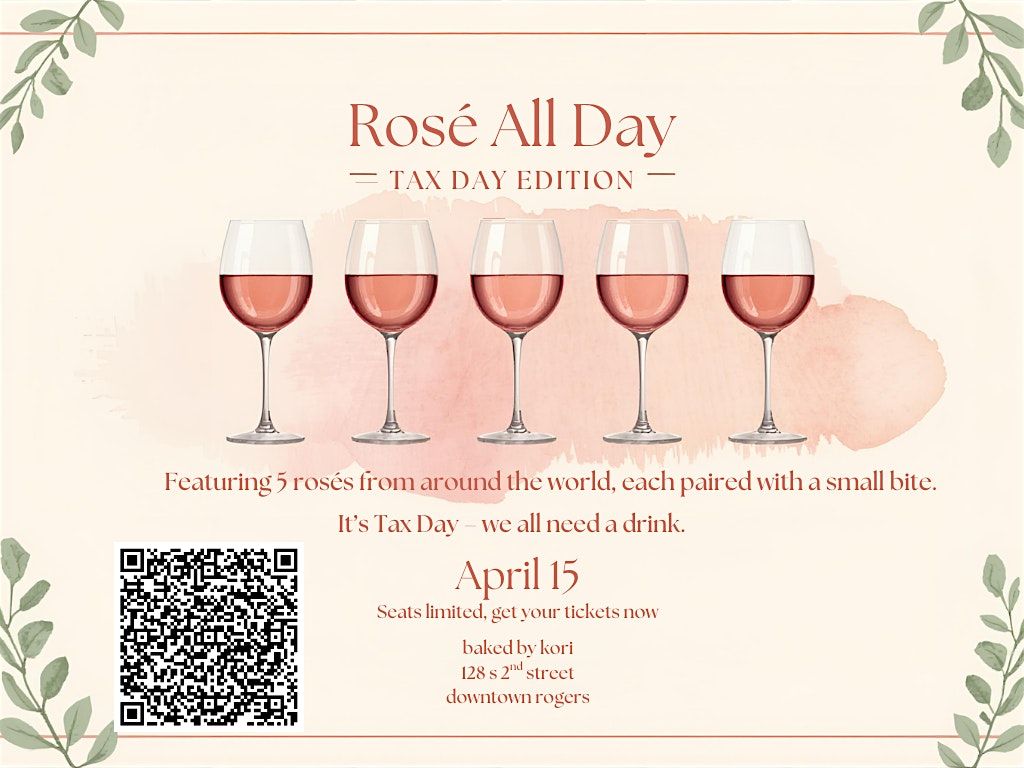 Join us at Baked by Kori on April 15th for a special Rosé Around the World Wine Tasting. Since it’s Tax Day, we’re giving everyone the perfect excuse to unwind with wine.
