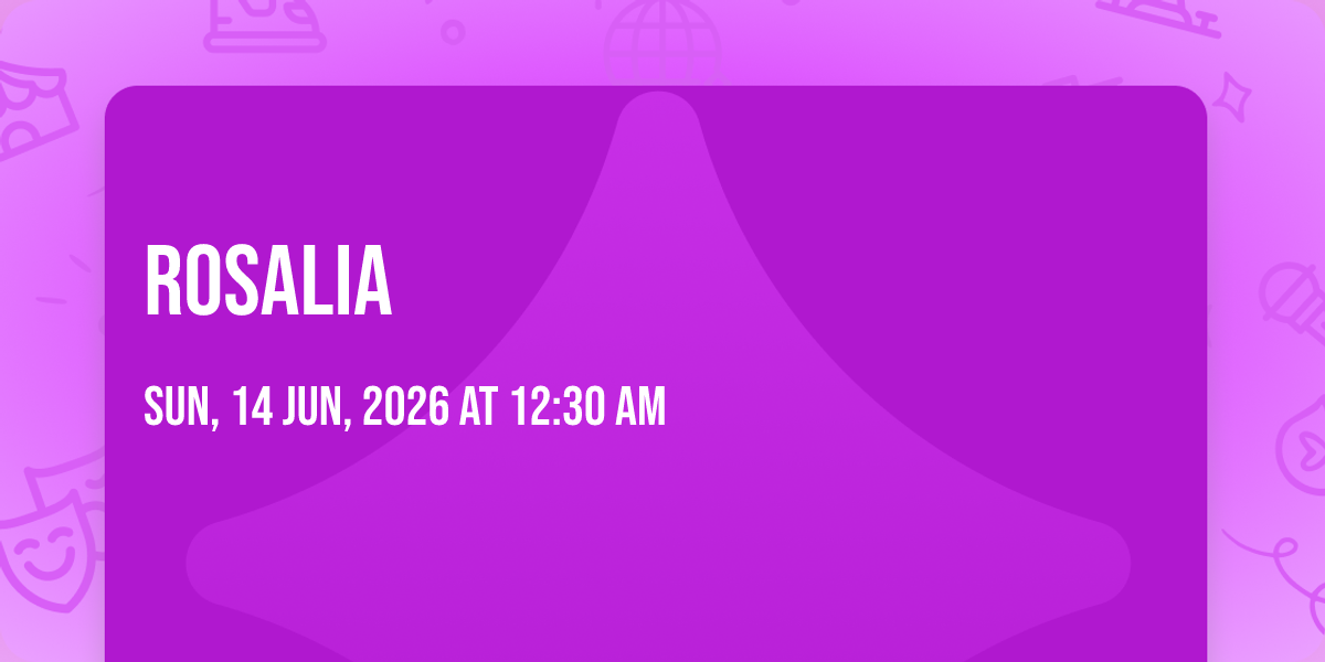 📍 Location: 43.6435, -79.3791🌟 Step into a world of wonder at Rosalia, where extraordinary moments await! 🏛️ Located at Scotiabank Arena in dynamic Toronto, ON, this event will become the talk of the town. 📅 Join us on June 14th, 2026 at 12:30 AM for a celebration that defies the ordinary. ✨ This curated experience brings together the best of entertainment, culture, and community spirit. Every detail has been thoughtfully planned to ensure an unforgettable experience for all our guests. 🎯 Take advantage of this opportunity to be part of something special. 🎊 Early registration is recommended as space is limited!