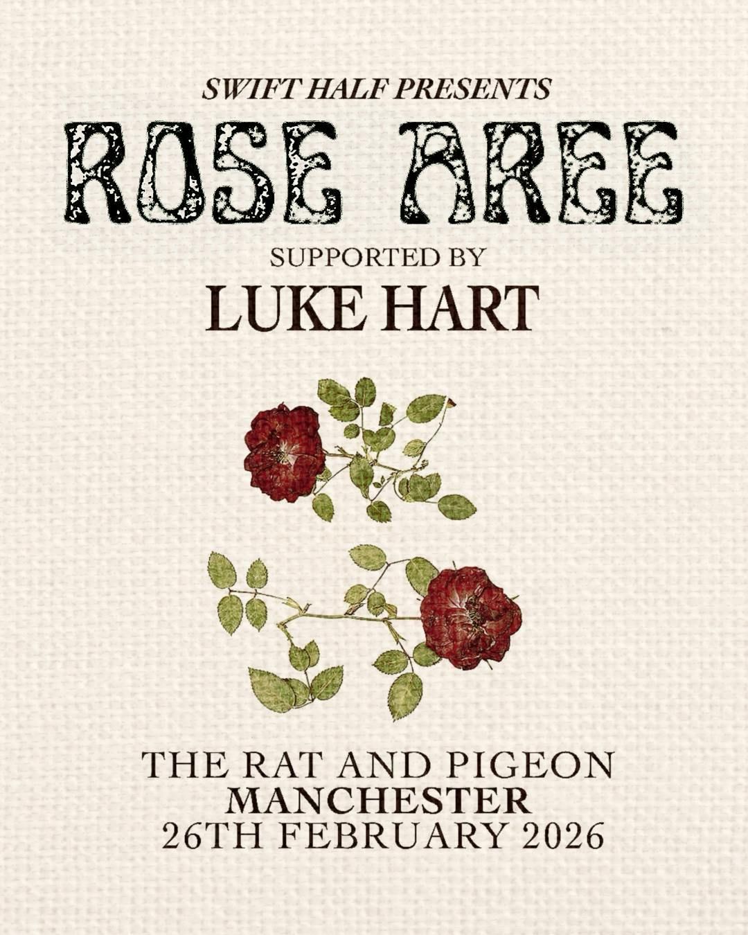 Rose Aree is one of the UK's rising stars with an incredible gift for songwriting. Her vocals are some of the best you'll ever hear and she is supported by an equally talented folk singer and TikTok star Luke Hart!it will be a masterclass In songwriting and performance and you won't want to miss it.