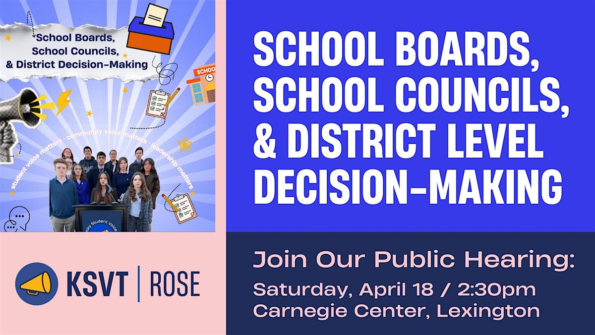 Join the Kentucky Student Voice Team for our fifth Rose Revival Hearing in Lexington! This event will explore how decisions are made in our schools—from local school councils to school district boards—and why understanding these power structures is essential for students, families, and communities.