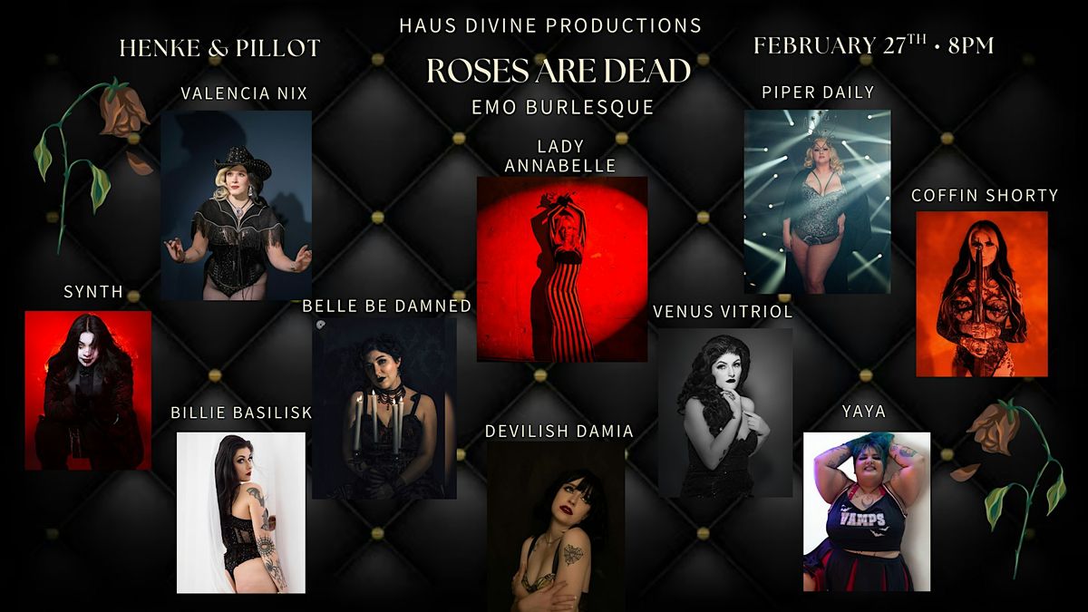 Come scream-sing, swoon and watch your favorite emo era strip down to its lacy, glittering core, with performances from Piper Daily, Belle Be Damned, Yaya, Valencia Nix, Coffin Shorty, Devilish Damia, Billie Basilisk, Venus Vitriol, and Synth. The emo drag and burlesque is hosted and produced by owner of Haus Divine Productions and Houston Divine Studio, Lady AnnaBelle.