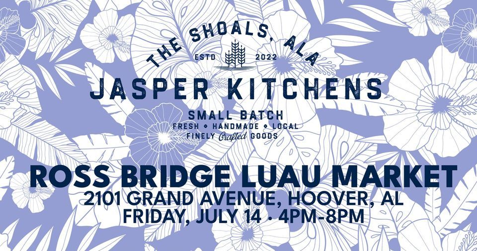 Join Jasper Kitchens on Friday, July 14th (4PM-8PM) for the Ross Bridge Luau Market!Enjoy a free community event that supports local farmers, artisans, & more!